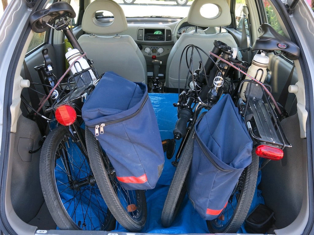 Twin folding bikes in our Nissan Micra