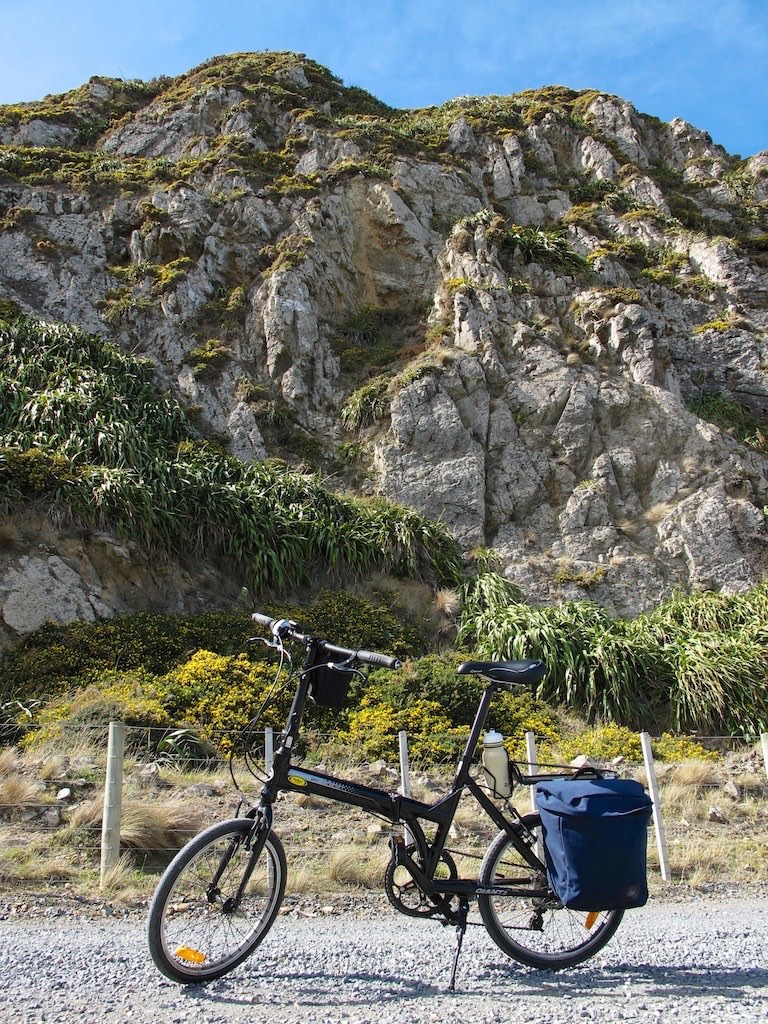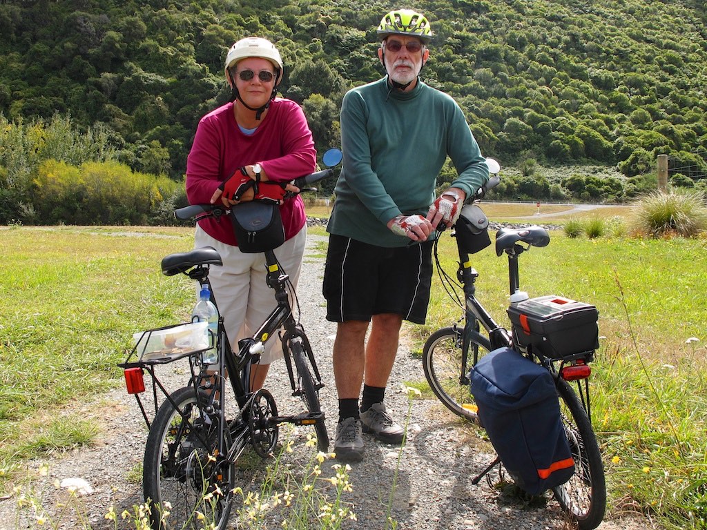 IntroductionThe Giant ExpressWay 2, 2013 folding bike was intended for commuting, especially where a larger bike was not permitted on peak hour public transport. Giant now offer only the 8 speed ExpressWay 1 which includes mudguards and a carrier for $799 in New Zealand. The bike is also ideal for new riders as a means to explore new places, and to get fit. You could drive from a hill suburb to somewhere flat with the bike folded up in the back of the car. There are many suitable cycle trails and tracks here in New Zealand. The bike is also a capable light tourer. For an account of our many rides, including the Otago Rail Trail see Dizzy's folding bike blog. I purchased this bicycle as an easy re-introduction to cycling and to improve my strength, fitness and balance. At the time the only folding bike that I could find locally was the Giant Expressway 2, so that was my choice. I got it at Burkes Cycles for $560 which was a routine discount from the retail price of $599. It was good value, reasonable quality and it rode well. I had not cycled for 13 years as I had to deal with after-effects of two brain tumours, an operation, radiotherapy and some unrelated cardiac blockages. My balance and confidence were affected. The folding bike was perfect as I could drive to somewhere flat to ride. I soon was able to deal with my balance issues and I gradually started riding some of the steep hills near home in Wellington, New Zealand. I also made more use of my old late 1980s Tarini mountain bike. My fitness has improved. I have lost some weight and the stiffness, which sometimes comes with ageing, has largely receded. My balance has improved as well. I no longer feel light-headed when I stand up. Once my fitness improved, I started using the folding bike for longer rides such as the Hutt River Trail. A 20 to 60 k ride could be undertaken without any on-road riding. The surface is variable and much of the upper part of the ride was on gravel paths. I had no problems with the folding bike on these surfaces. I bought Désirée a bike so she could join me on the rides. So far we have ridden most of the Hutt river trail as well as some coastal rides in Wellington. Both bikes can easily fit inside our small Nissan Micra car with room to spare for luggage. We rode much of the Hawke's Bay cycle trails and the Otago Central Rail Trail. See Dizzy's folding bike blog and additional information below. Folding bike dealers in WellingtonThere are many fine brands of folding bike, but in Wellington until recently, the retail choice has been somewhat limited. Last time I looked there were a few more models available, principally the Tern Link C7 and D8 and both Giant ExpressWay models at Burkes Cycles, Giant Expressway folding bikes at Cycle Science in Lower Hutt and the Brompton M6L at Bicycle Junction. Technical DetailsBike Specification